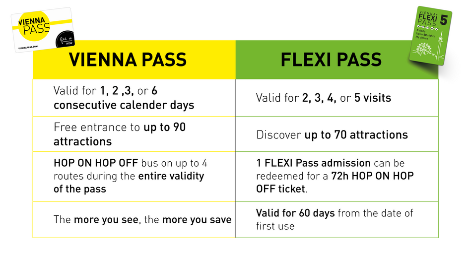 *The Vienna PASS gives you one-time access to the sights, with the exception of the HOP ON HOP OFF buses of the VIENNA SIGHTSEEING TOURS, which you can use as often as you like during the entire period of validity of your pass.