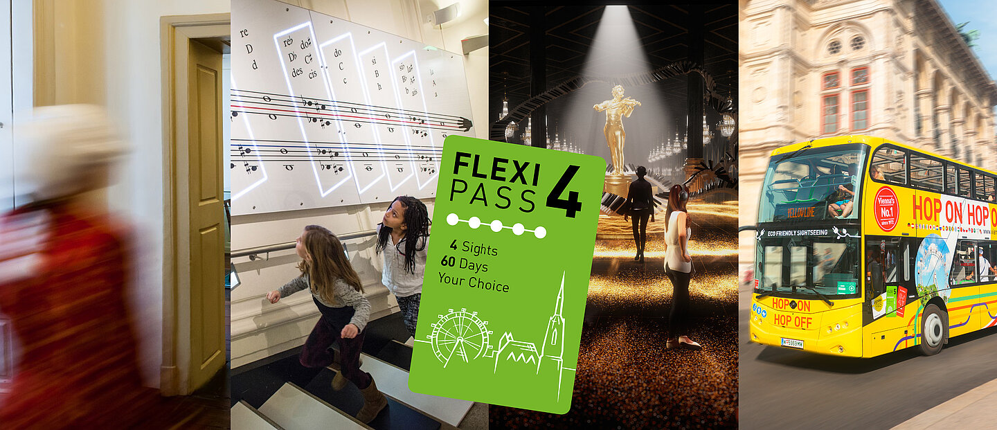 El Vienna FLEXI Pass le ofrece la entrada gratuita a 4 monumentos; los monumentos que figuran en la lista son meras recomendaciones nuestras. Puede elegir hasta 60 monumentos diferentes y confeccionar su propio programa. Aquí encontrará todos los monumentos incluidos: Lugares de interés del FLEXI Pass