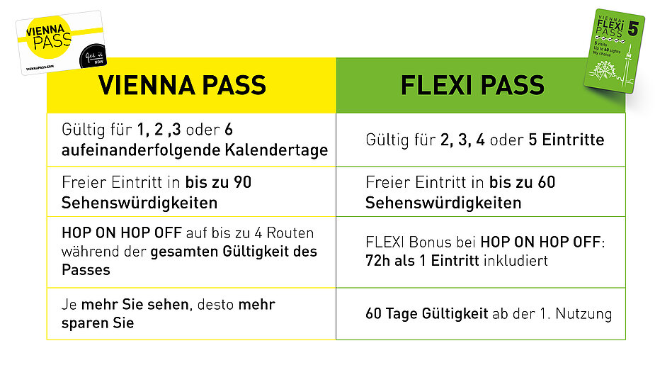 Der Vienna FLEXI Pass lohnt sich für Sie, wenn Sie zwei oder mehrere Sehenswürdigkeiten in kurzer Zeit besuchen wollen. Prüfen Sie vorab am besten, welche Sehenswürdigkeiten im PASS enthalten sind und wie viel die Eintritte ohne Pass kosten würden.