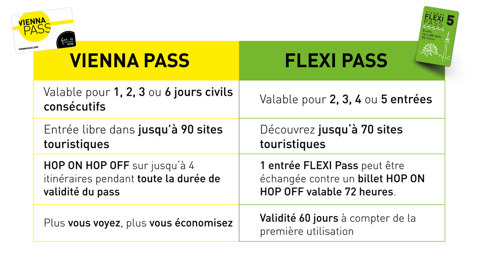 *Avec le Vienna PASS, vous bénéficiez d'un accès unique aux sites touristiques, à l'exception des bus VIENNA SIGHTSEEING TOURS HOP ON HOP OFF, que vous pouvez utiliser aussi souvent que vous le souhaitez pendant toute la durée de validité de votre pass.